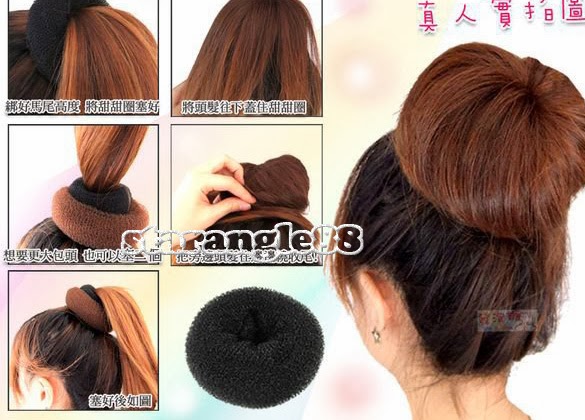 Model rambut donat.. Mereka datang dalam berbagai ukuran dan Anda hanya perlu membuat ekor kuda, melewati pusat donat dan mengamankan rambut Anda dengan pin di sekitar ini.